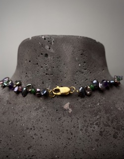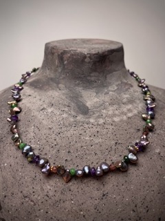 Kette Süßwasserperlen, Amazonit,Turmalin,Amethyst. Länge: 46cm Verschluss Silber vergoldet