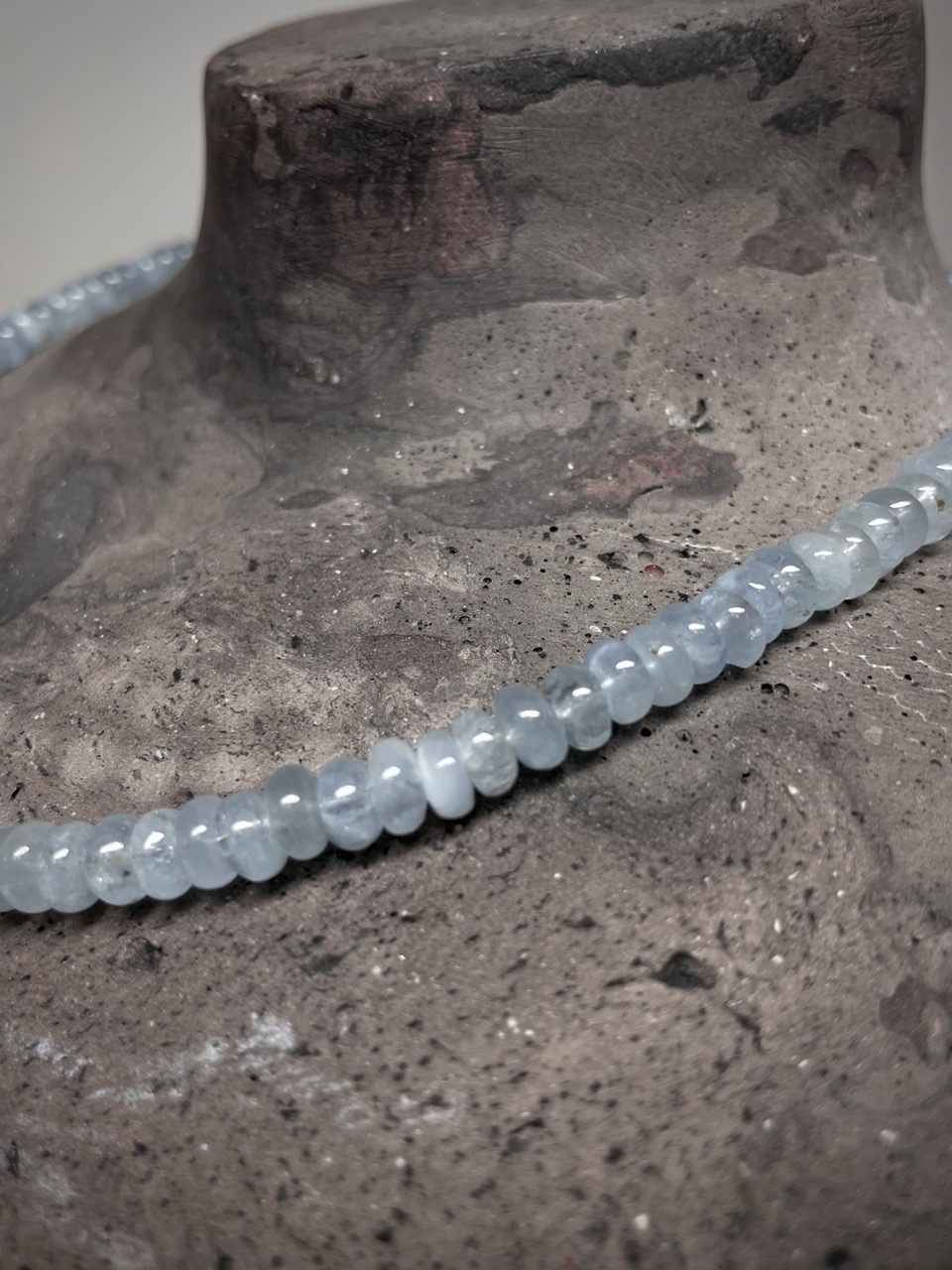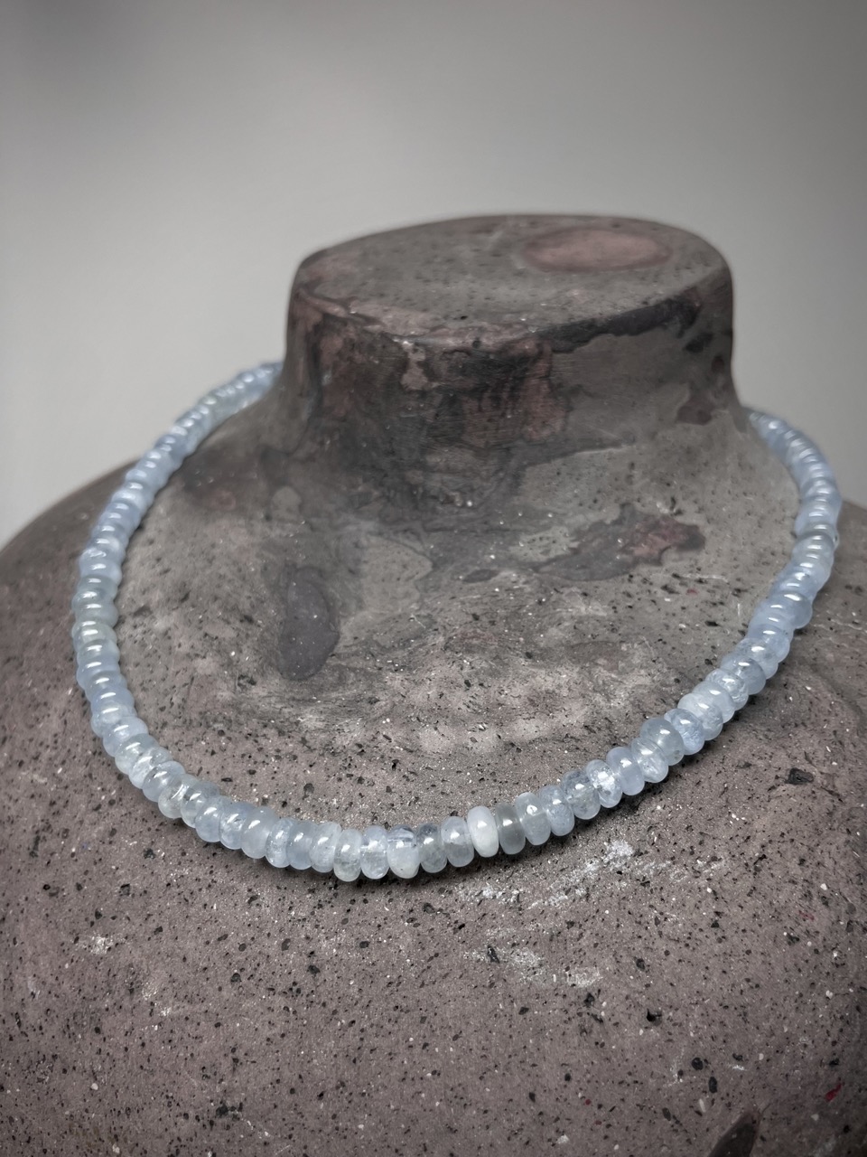 Aquamarin Kette, 43cm lang, Karabiner verschluss 925/-Silber.