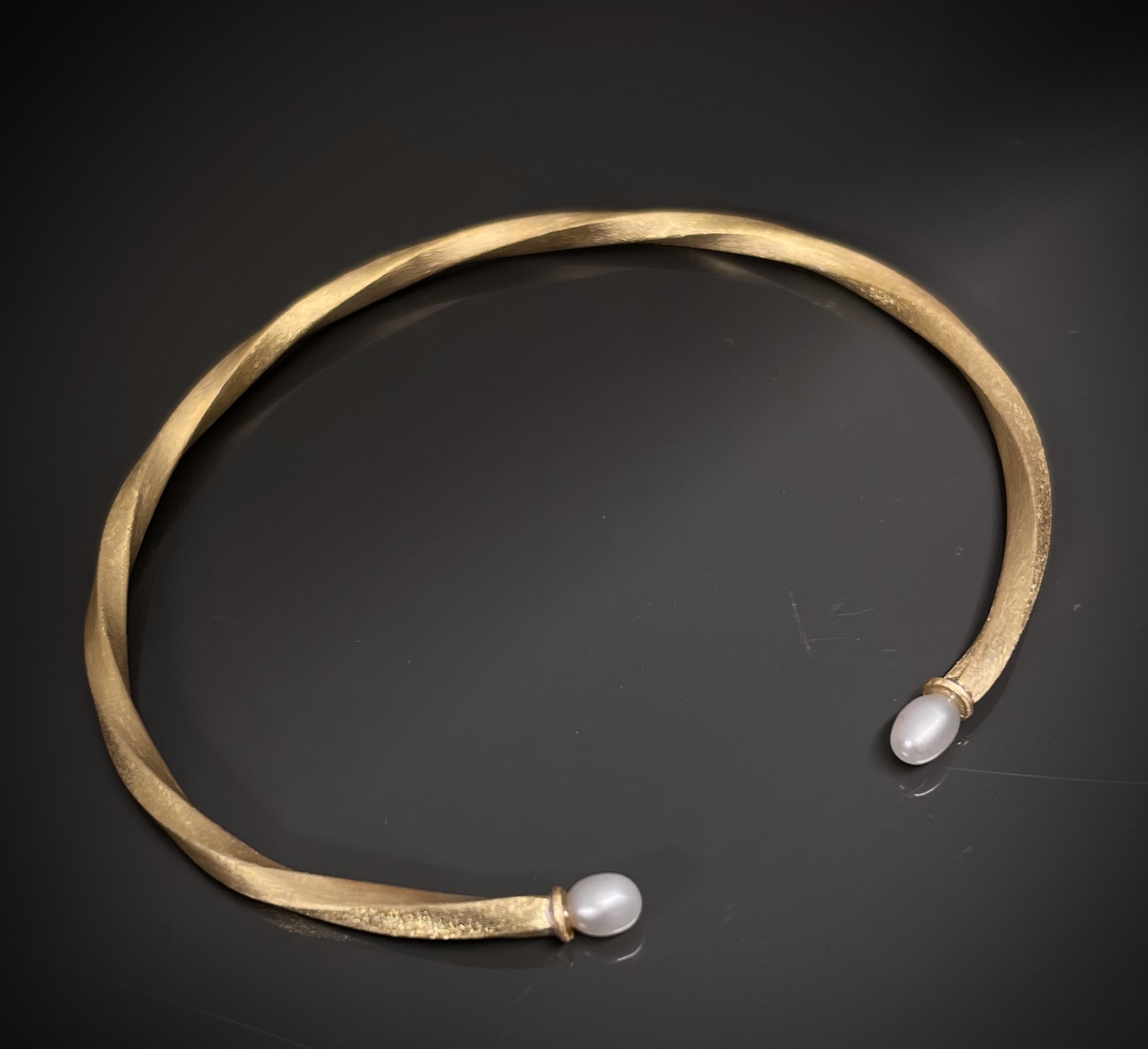 Filigraner, handgefertigter Armreif, diamantierte Oberfläche.