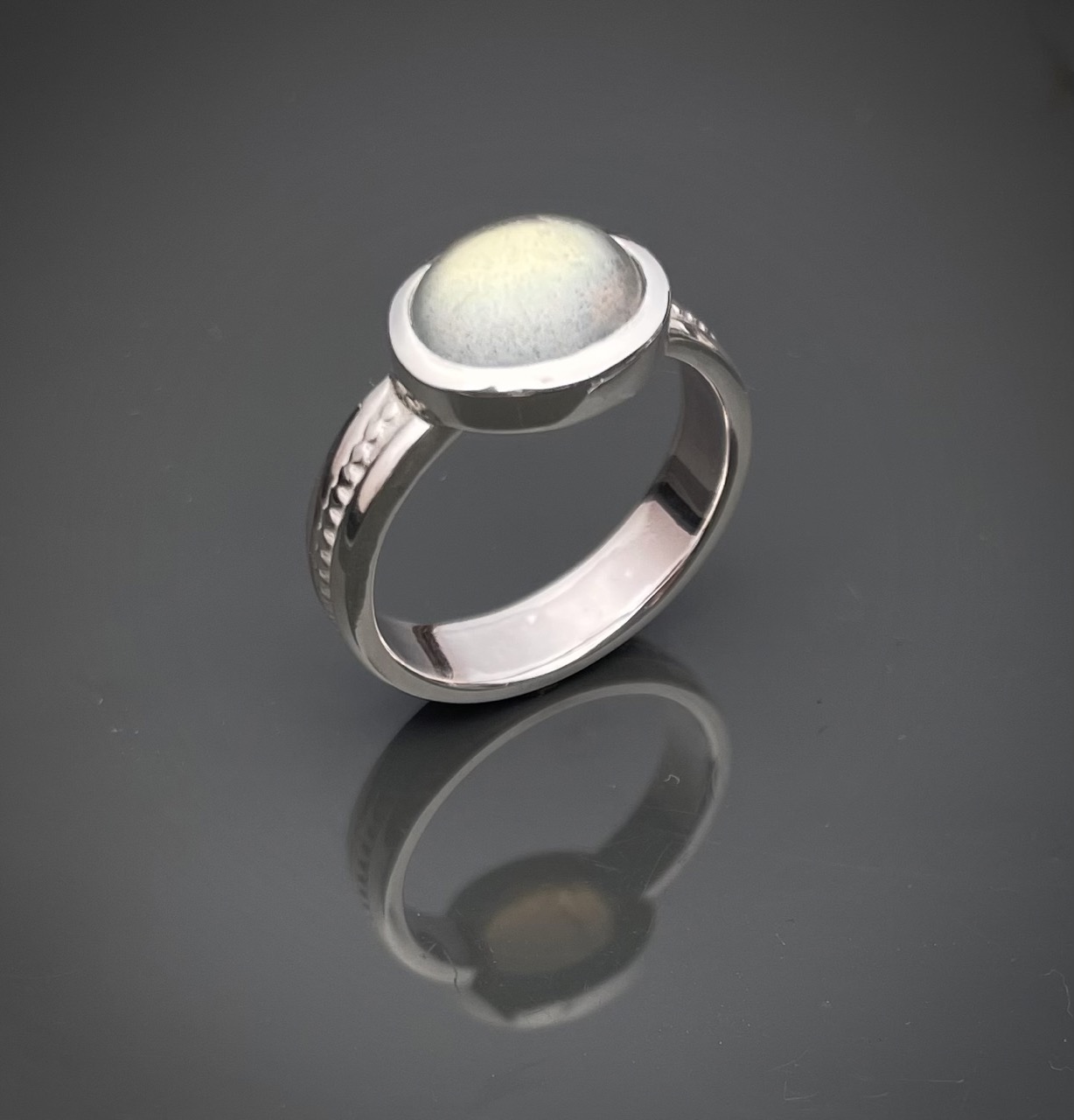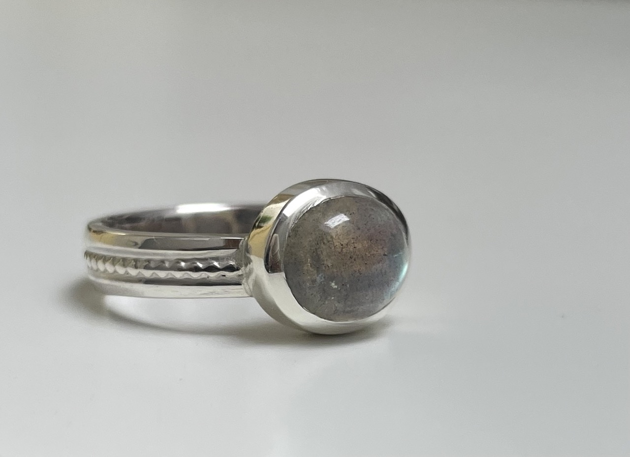 Edler Labradorit-Cabochon Ring mit Farbspiel: