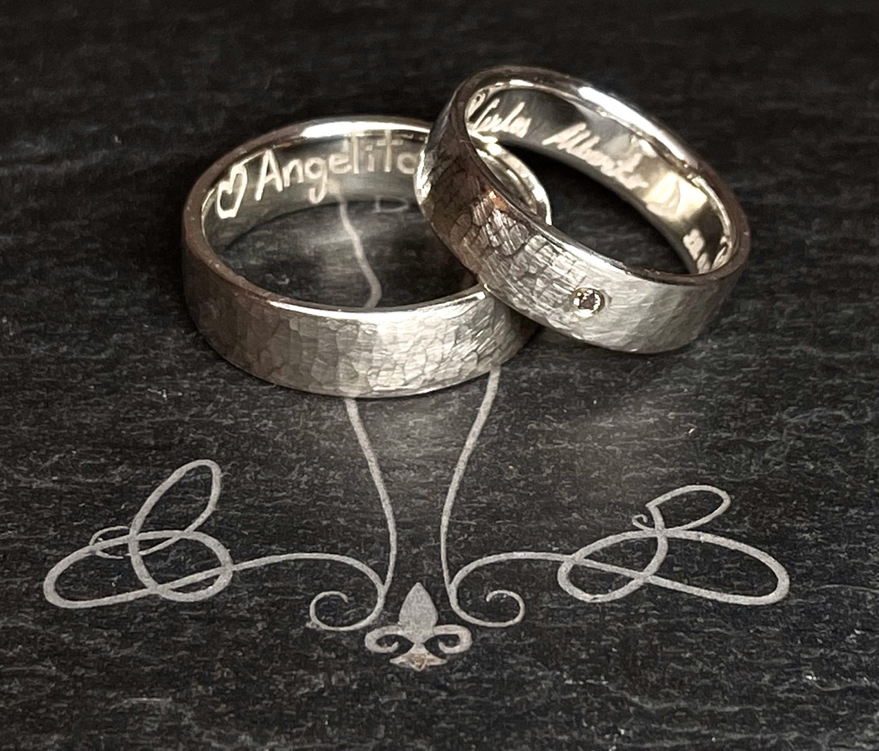 Partnerringe aus Silber. Herrenring 7mm breit Damenring 6,5mm breit Ringgrößen individuell bestellbar bis Gr. 70